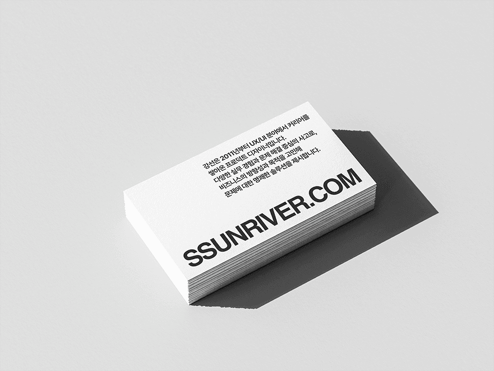 UX/UI 프로덕트 디자이너 강선의 개인 명함을 제작했습니다.