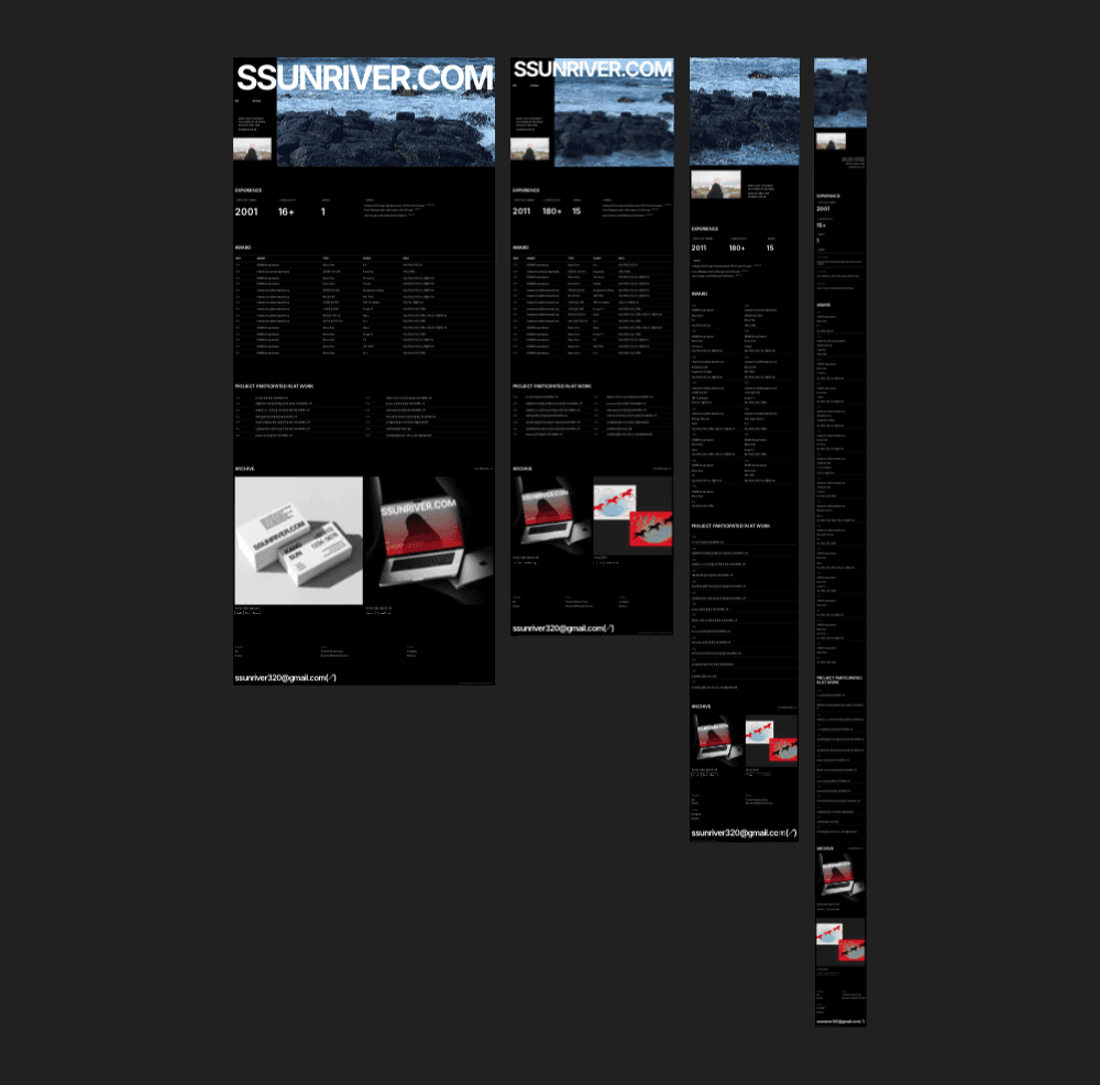 강선의 개인 브랜드 웹사이트 <SSUNRIVER>는 큼직한 사진과 타이포그래피를 중심으로 구성해, 와이드하면서도 깔끔하고 모던한 디자인 스타일을 명확하게 드러냅니다. 본 웹사이트는 프레이머로 제작되었으며, 유니크한 인상을 주는 다크 모드를 적용하고 12칼럼 그리드 시스템을 적용해 질서 있는 무드를 완성했습니다.